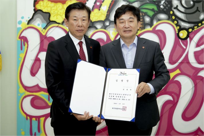 제주도는 신임 제주개발공사 사장이 지속적 기업성장과 안정적 경영으로 제주개발공사의 성장과 안정을 위한 구심점 역할을 수행할 것으로 기대하고 있다.
