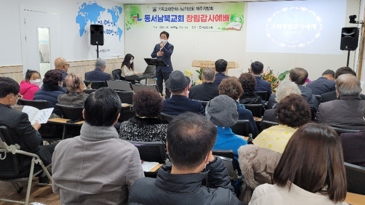 동서남북교회 김학수 목사도 "지금까지 인도하신 에벤에셀 하나님을 찬양하고 어려운 시기에 분립 개척할 수 있었던 건 박명일 목사님과 장로님 성도님들이 물심양면 도와주셔서 가능했다"며 "동서남북 교회가 지역과 서귀포, 나라, 민족, 열방을 위해서 제주10만 전도, 세계 100만 선교의 한 부분을 감당할 수 있는 교회로 성장하길 바란다"고 소망했다.